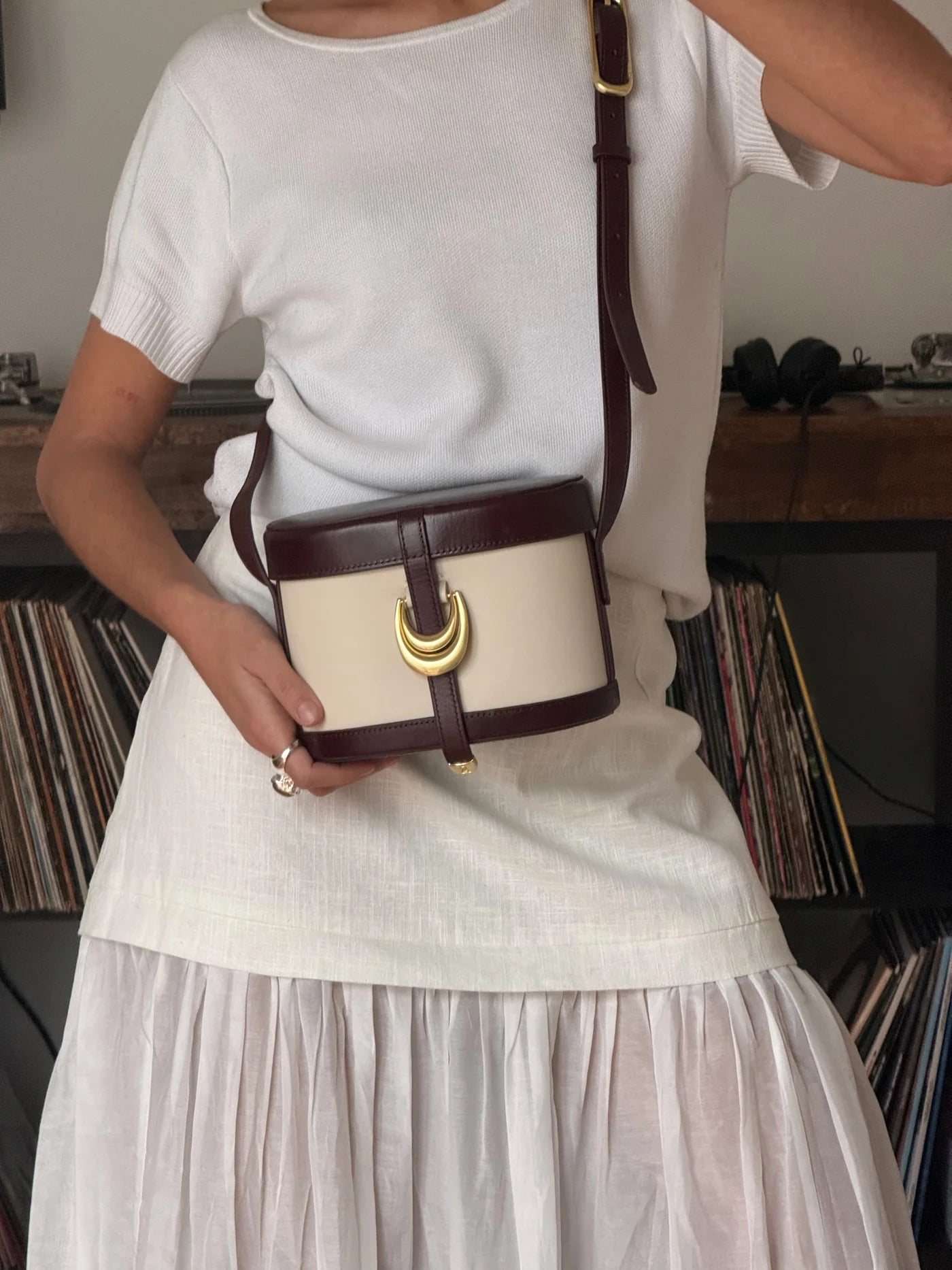 A signature SANCIA shape, the Upata Canteen is more spacious than you'd think and offers room to carry all the essentials. The firm structure will protect your most precious possessions, highlighted with brushed gold hardware for an elegant yet understated finish. The interior is lined with 100% OEKO-TEX Linen and features an internal compartment and zip pocket. The shoulder strap is adjustable to ensure it sits comfortably for everyday wear.