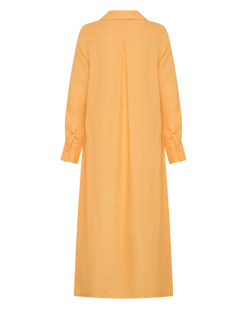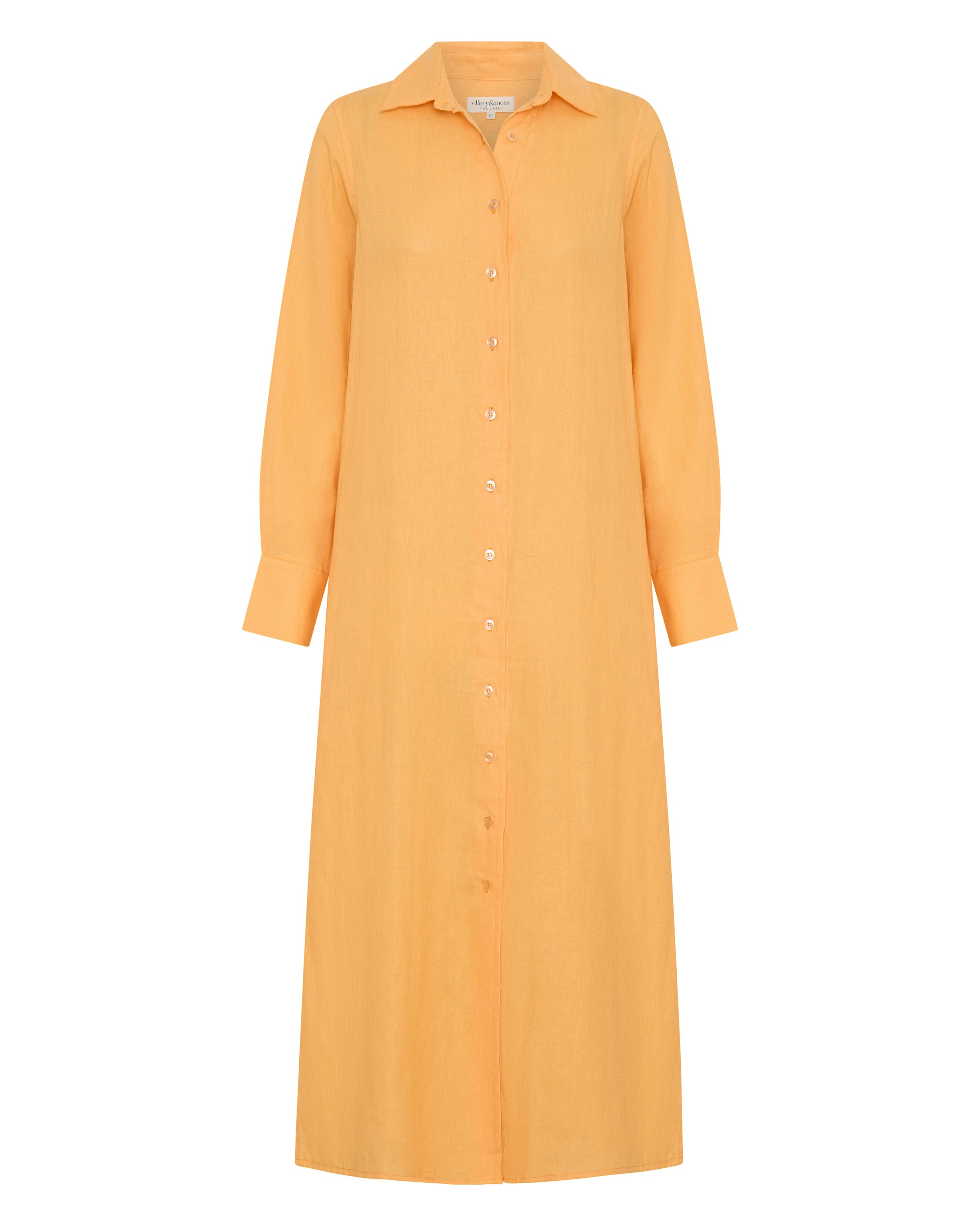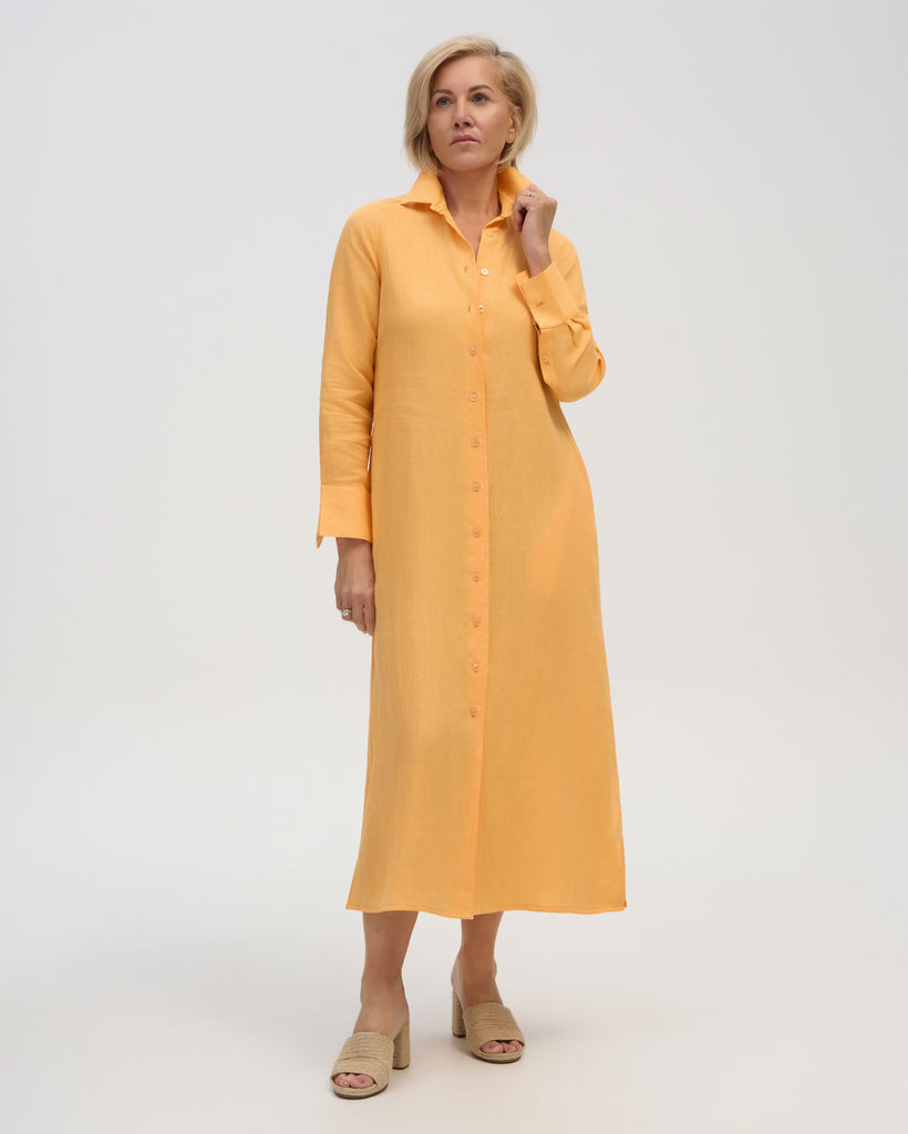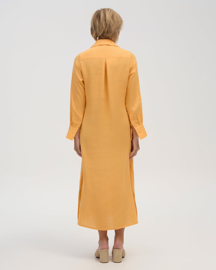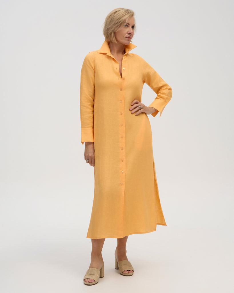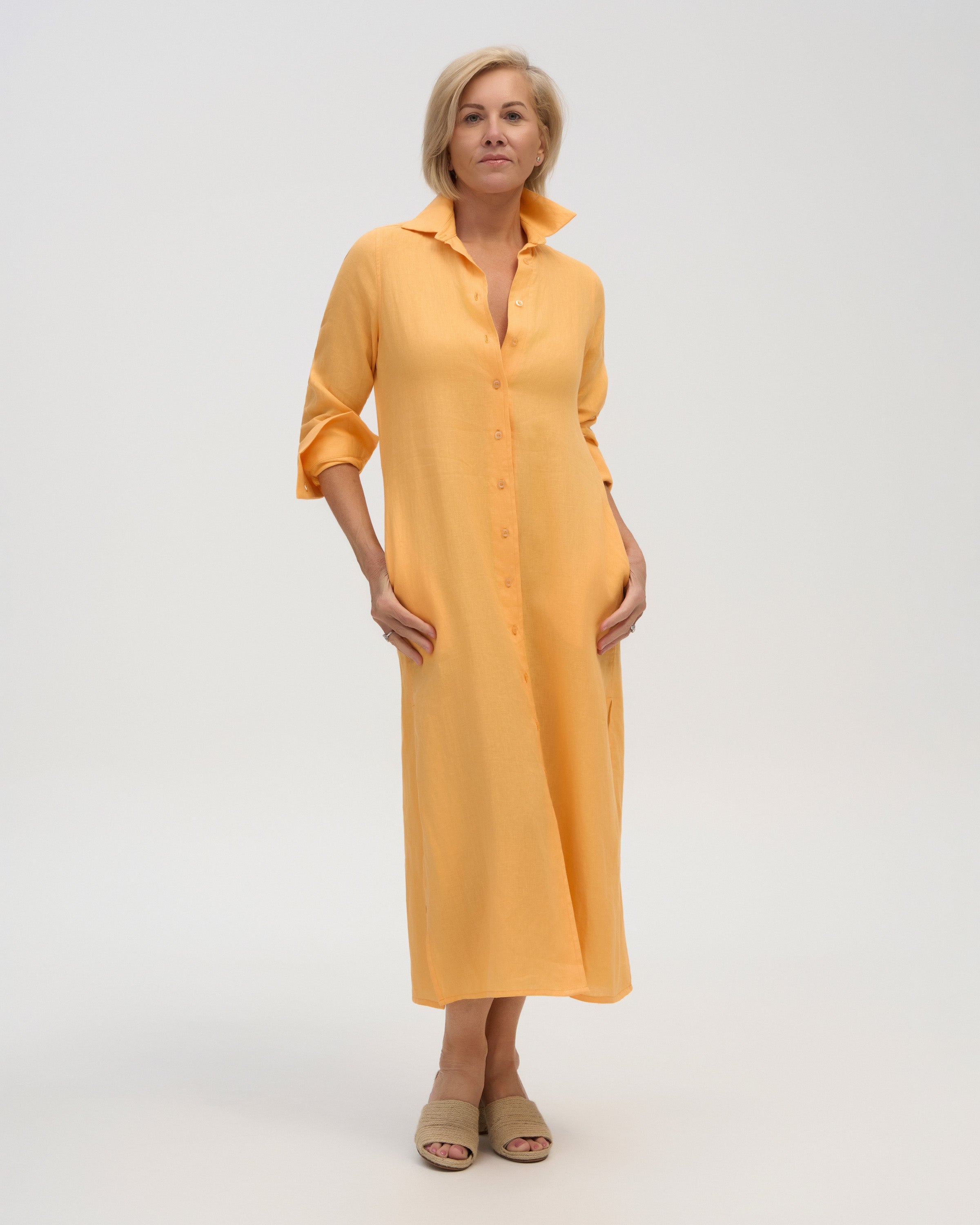 A crisp shirt collar, wide cuffs and ankle-skimming hem keep things sharp, while the side splits and pockets bring breezy practicality. Style it loose with sandals for Summer ease, or buttoned up with a blazer when the day calls for polish. This is comfort, quality and timeless style stitched into one hardworking piece.