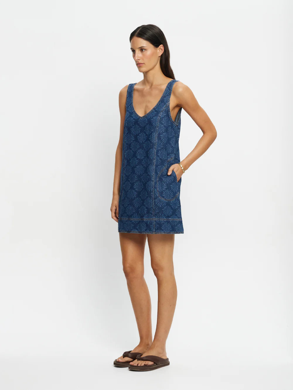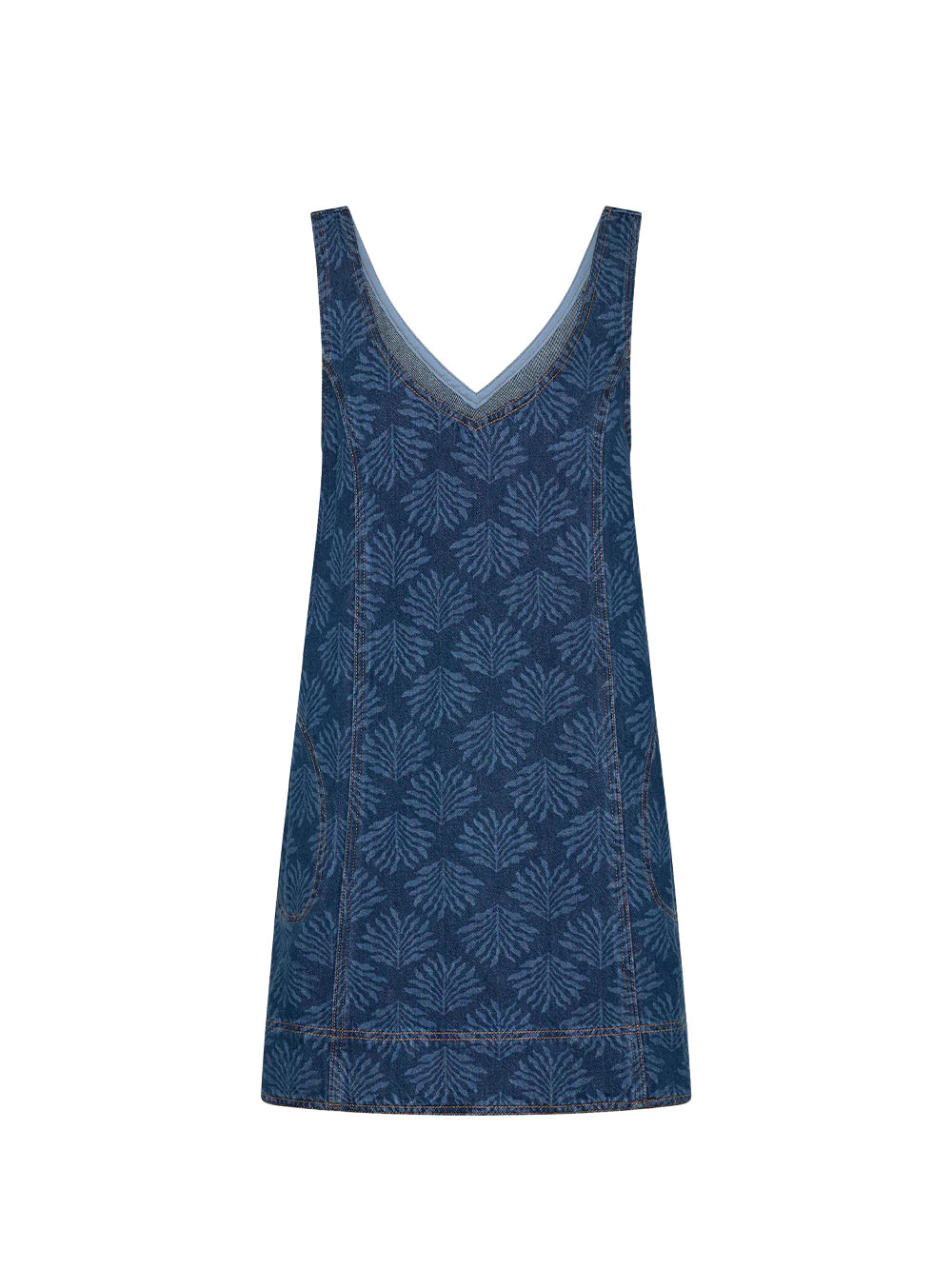 The Ilaria Denim Mini Dress is a relaxed shift silhouette, crafted in a printed coral design. Featuring contrast topstitch detailing, panel seams and front pockets, this effortless style combines laid-back ease with elevated detailing. Elevate with heeled sandals for warm evenings or long lunches in the sun.