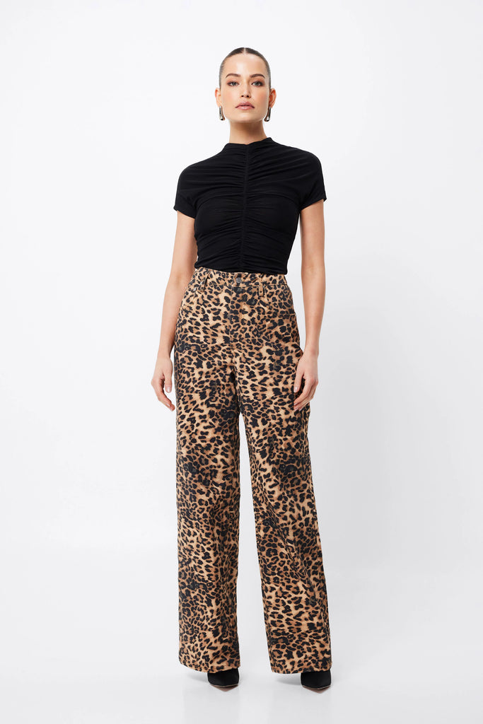 • Leopard print rigid denim