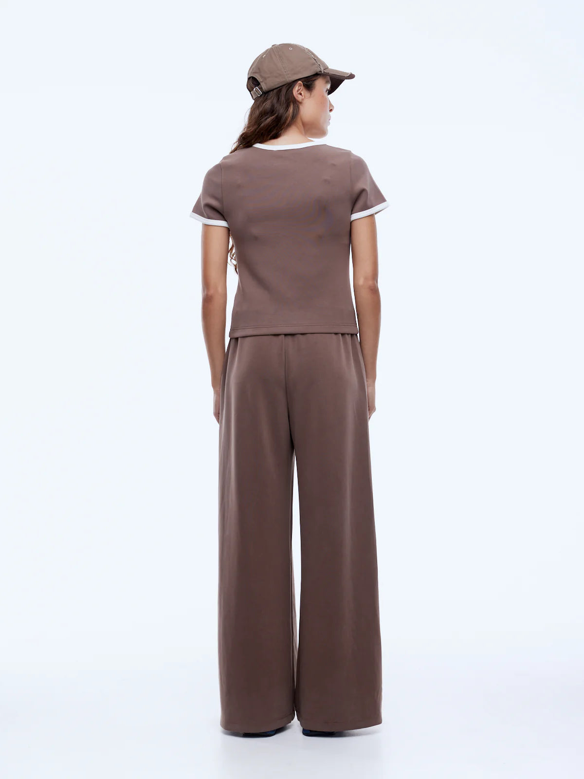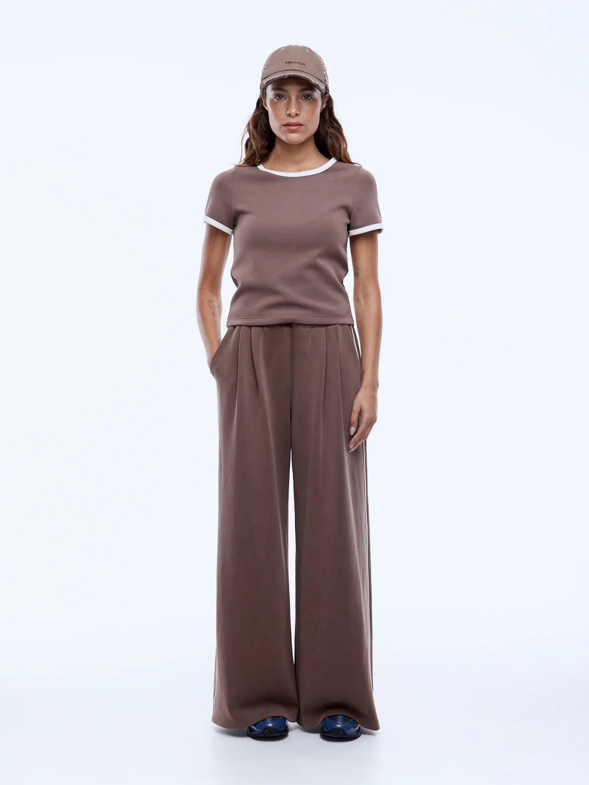 Curated by Ellery & Moss, the Elly Fitted Tee is cut in a smooth modal blend with a fitted, slightly cropped silhouette in mocha. Finished with contrast neck and sleeve bindings, this elevated basic offers a refined update.
