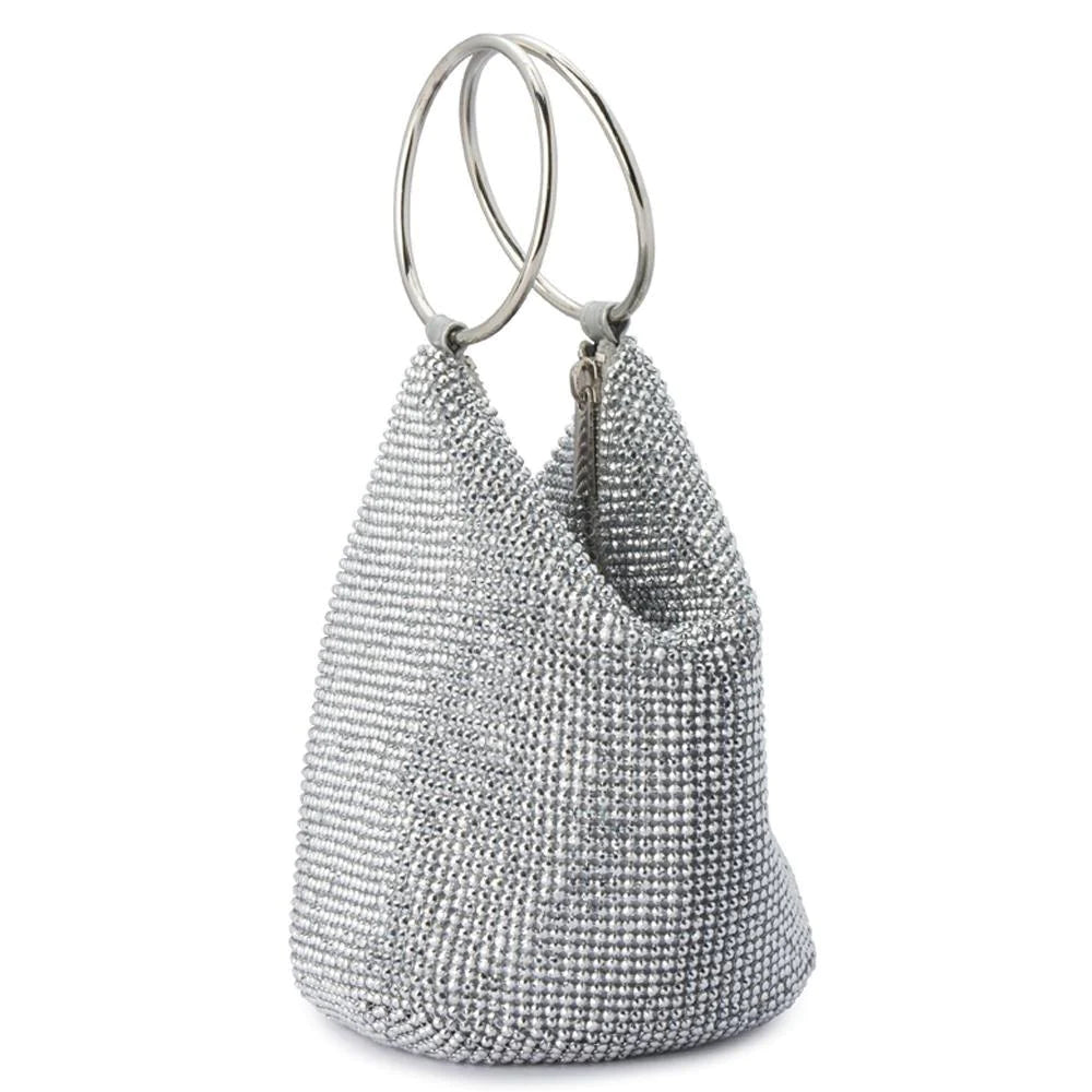 Olga Berg Ellie Crystal Mesh Bag - Silver