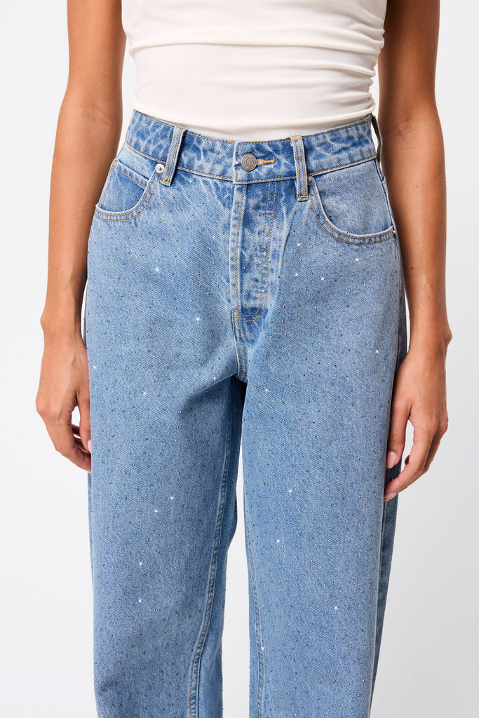 Bring a sparkle to your everyday with the Stargazer Jean in Vintage Blue — a modern update on a timeless silhouette. Adorned all-over with rhinestone embellishment, a high-rise waist and straight-leg cut, this style strikes the perfect balance between effortless cool and statement shine. Crafted in a vintage blue wash denim with a classic five-pocket design, it transitions seamlessly from casual pairings with basics to standout looks that speak for themselves.