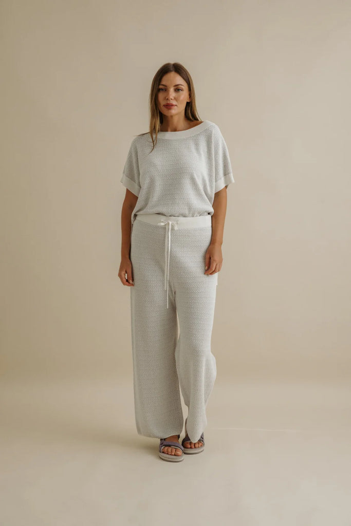 Talamaya Crepe Knit Tee Pullover - Milk x Silver Haze