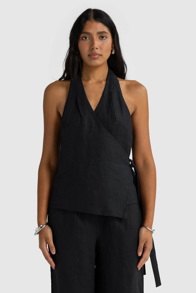 Once Was Samira Chiffon Sleeve Blouse in Onyx Casablanca
