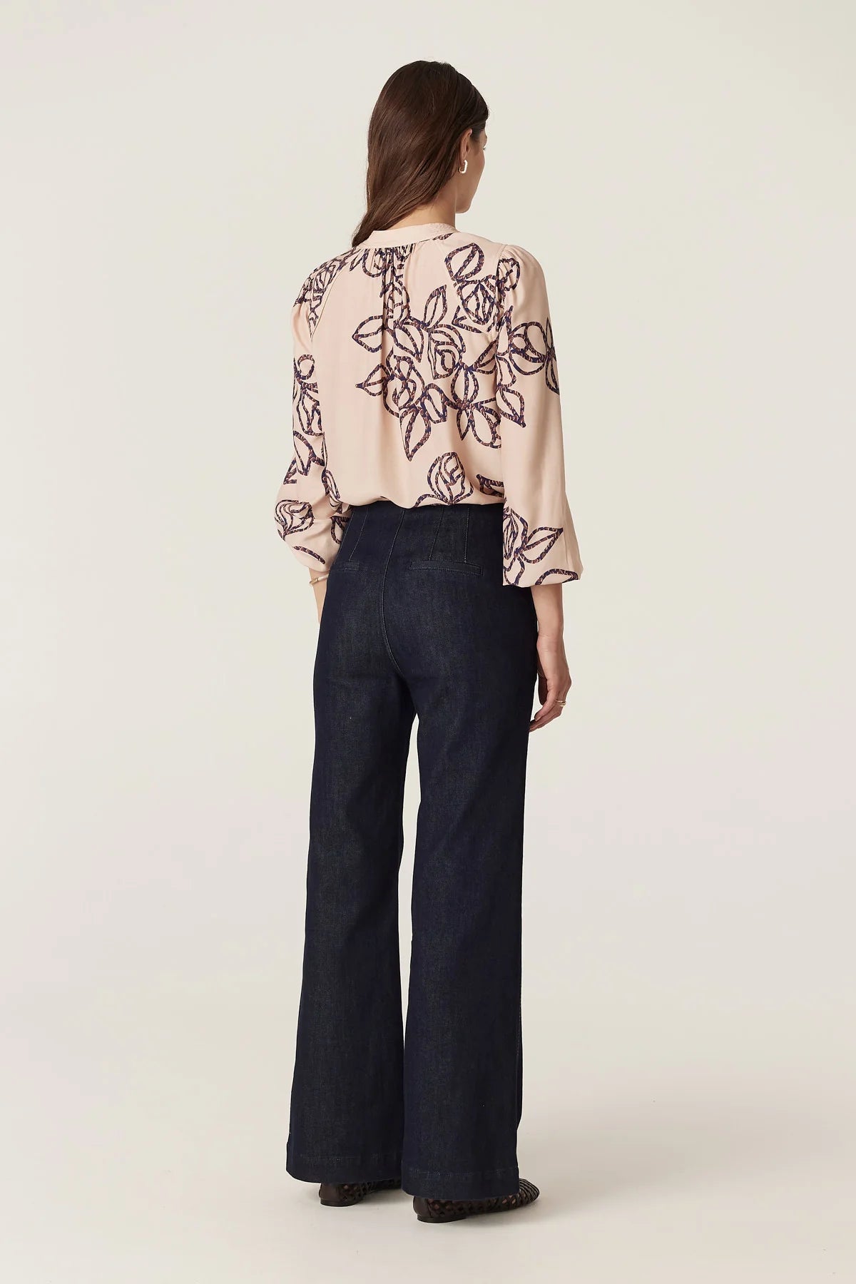 Curated by Ellery & Moss, the Bloom Blouse is made from a lightweight, breathable silk blend, the Bloom Blouse features a relaxed fit with a stand collar and tie detail. Designed with full length sleeves finished with elasticated cuffs, this blouse has an effortless drape through the body.