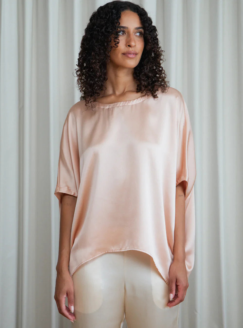 Introducing The Allure Top. This top is the perfect blend of kimono influence and contemporary elegance, capturing both sophistication and fun. Its relaxed fit allows for a graceful and fluid drape, effortlessly moving with your every move.