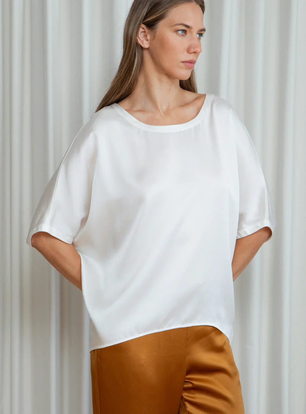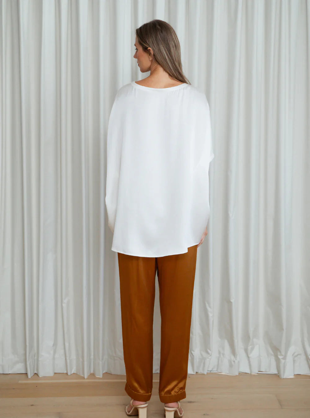 - Elongated back hem for a graceful drape