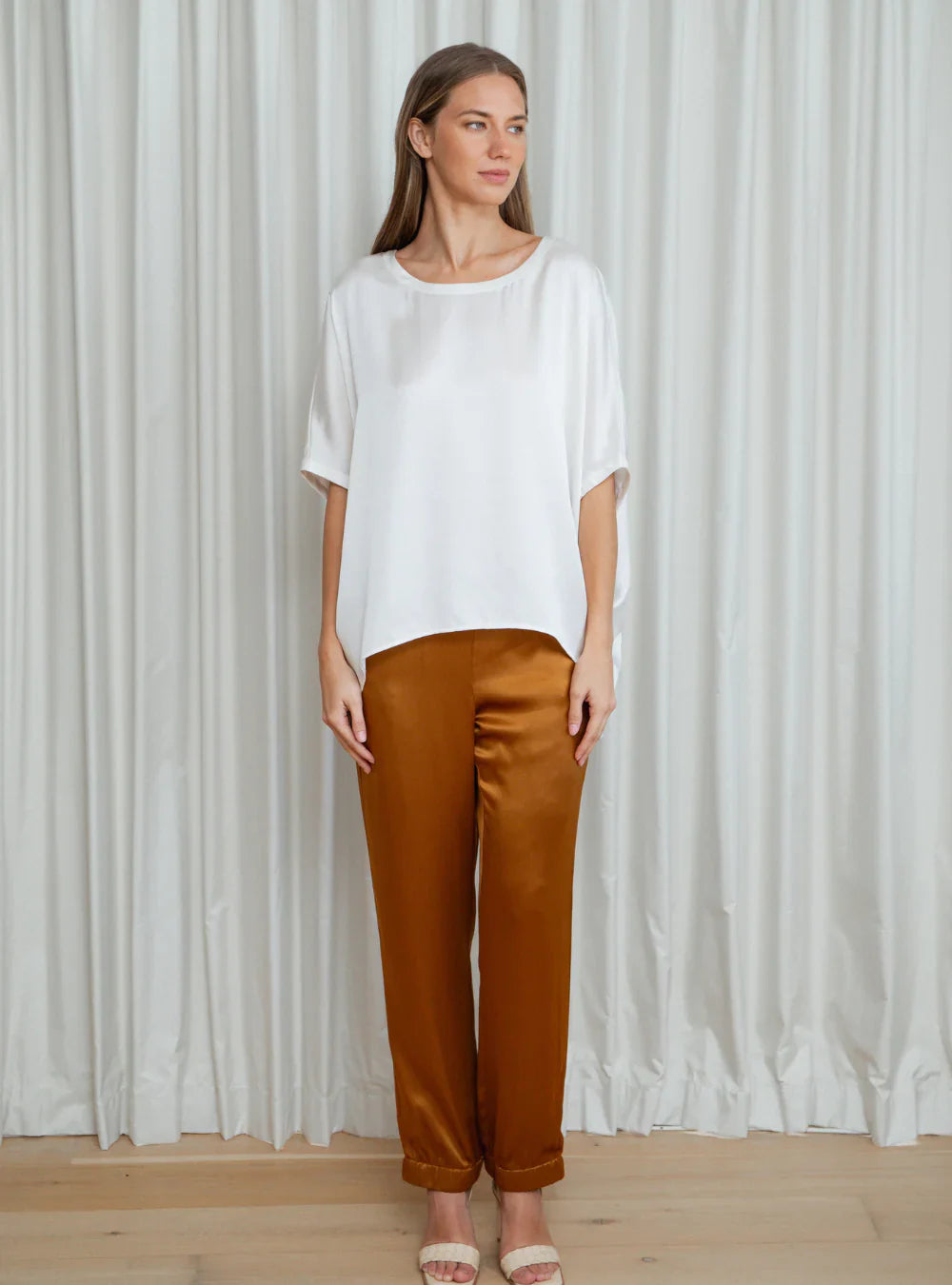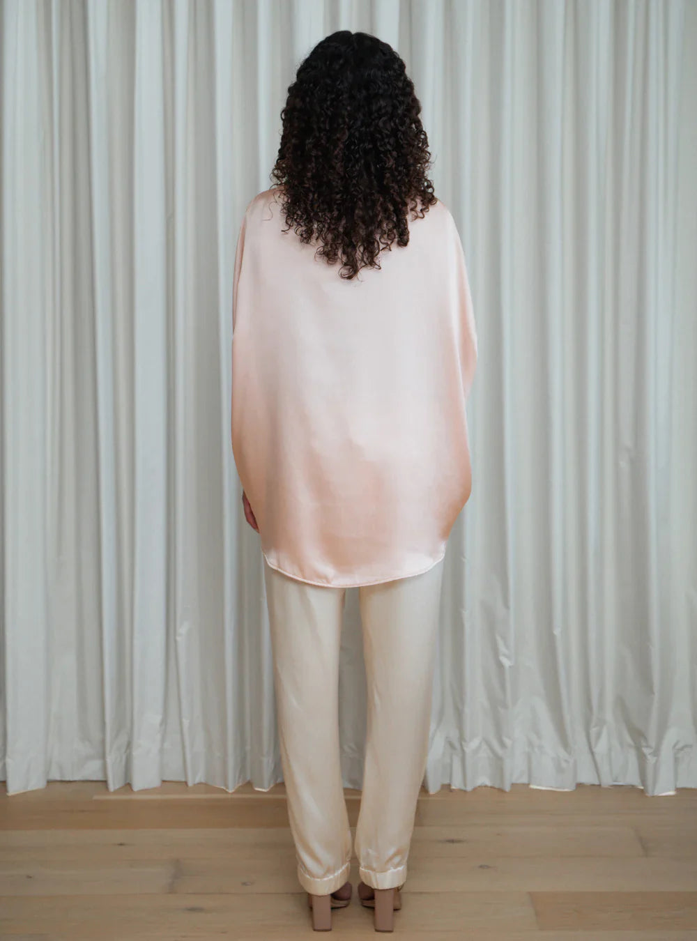 100% Mulberry Silk with a Satin weave, giving them a slightly thicker, glossy appearance.