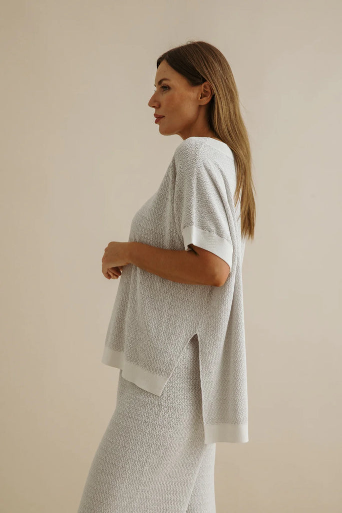 Talamaya Crepe Knit Tee Pullover - Milk x Silver Haze