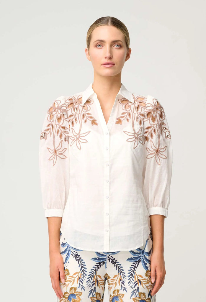 Once Was Callisto Cotton Embroidered Shirt in Ivory-Dune