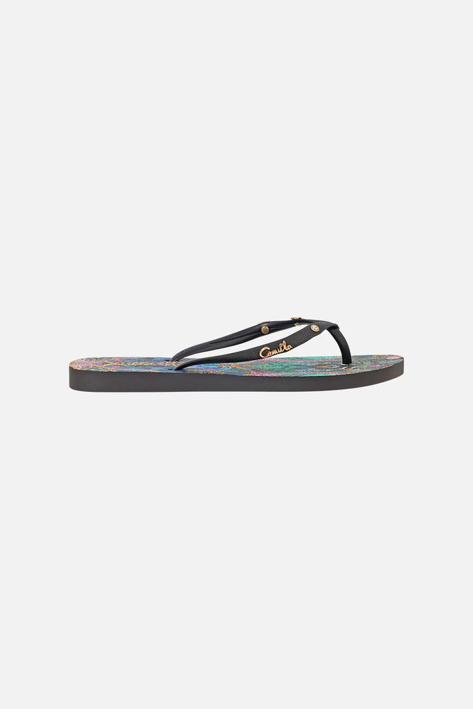 The Animal Alchemy Thongs is a handcrafted silhouette designed by our in house artisans. Reimagined in an exclusive limited edition print, our rubber thongs are made for sun drenched days, decorated with a contrast toe strap, CAMILLA logo and intricately applied crystal stud work.