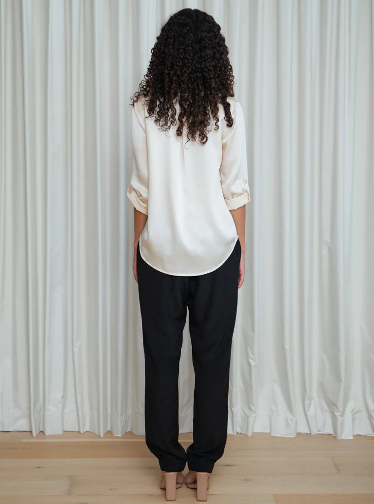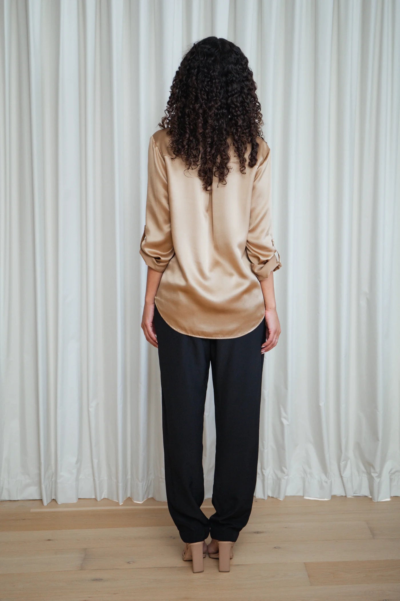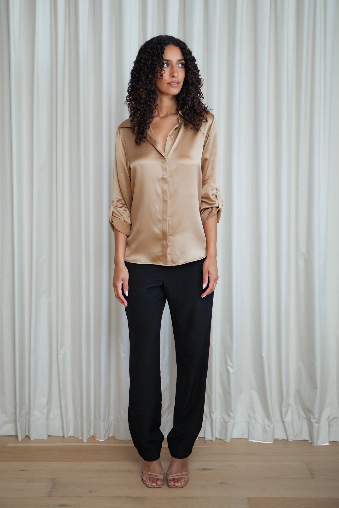 Introducing the Silhouette Shirt in classic black. An essential addition to your wardrobe, this timeless and sophisticated shirt exudes effortless elegance. Crafted with utmost luxury, it's the ultimate go-to for all occasions. Elevate your style with the most elegant shirt you'll ever own.
