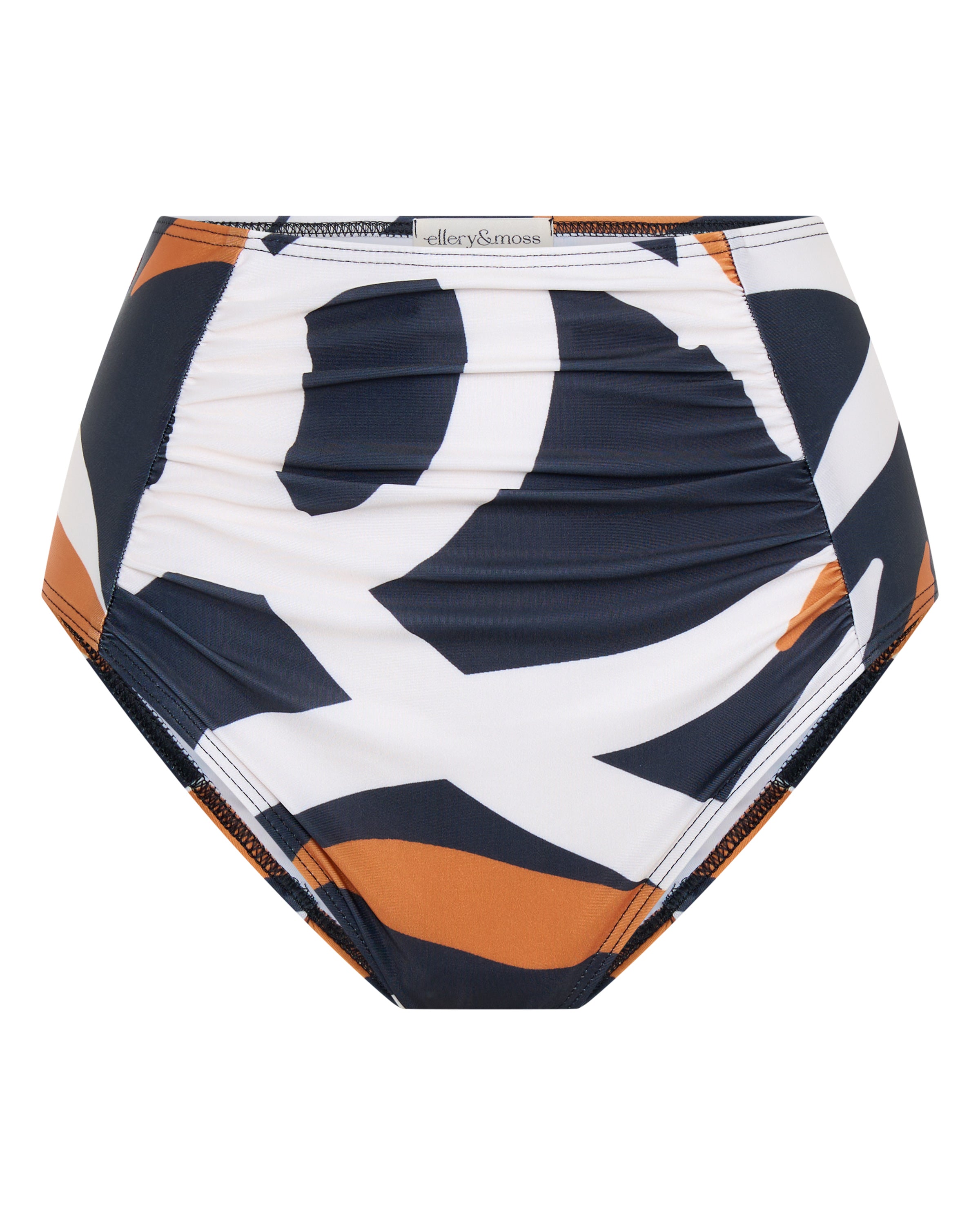 * High waisted bikini; gathering panels detail.