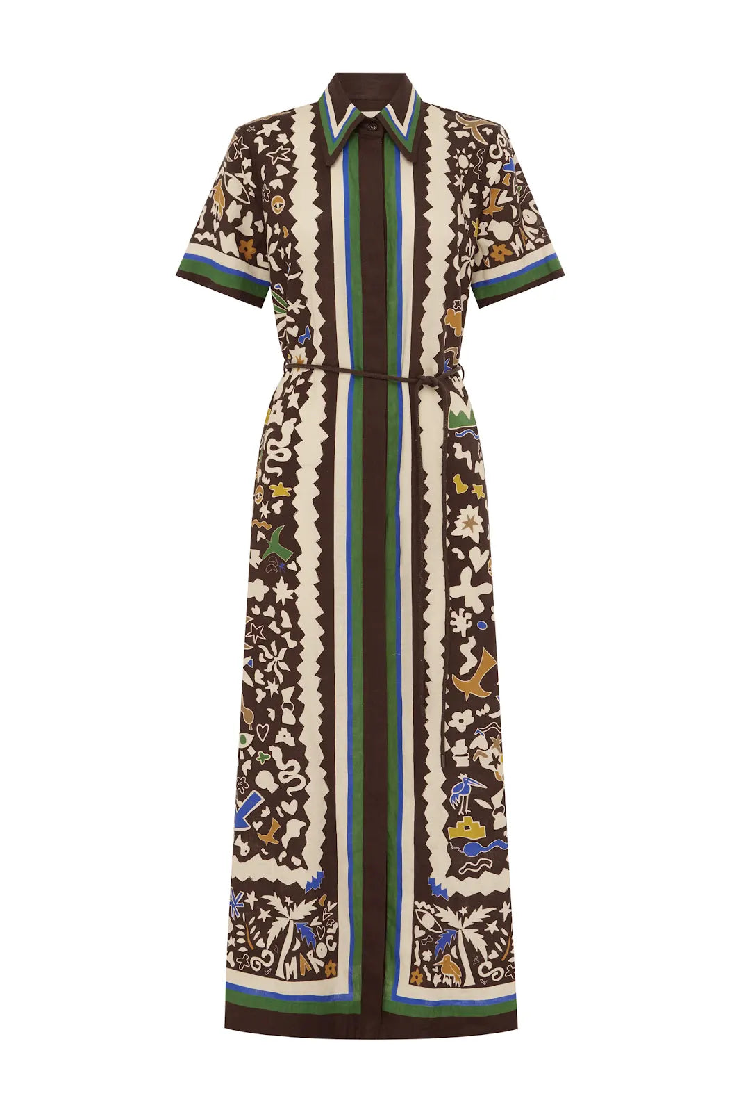 Relaxed shirtdress silhouette. Pointed collar and stand.