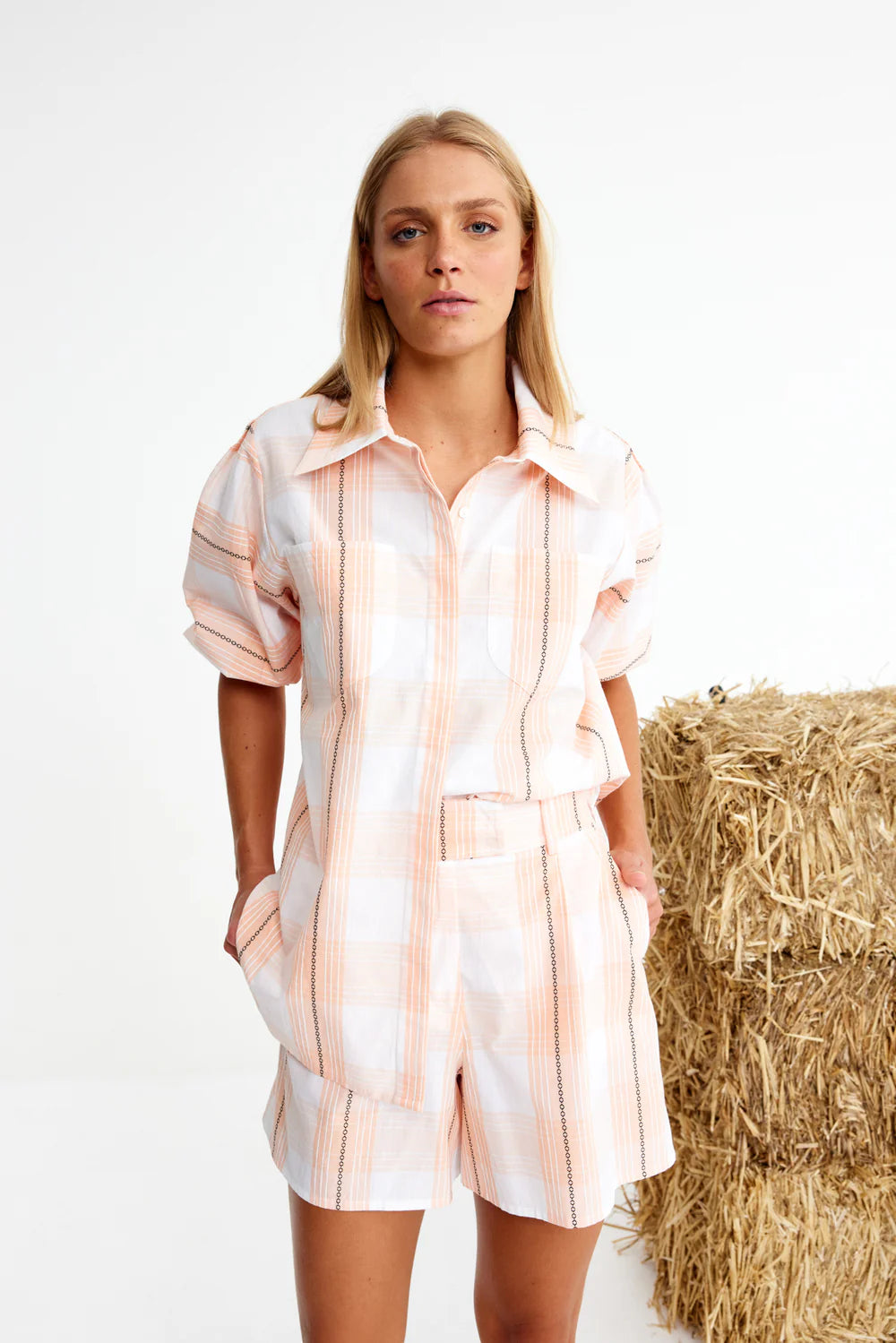 Jockey is built for a quick dash out the door - whether it’s to the stables or the supermarket. In crisp 100% cotton with a peach plaid that’s more chic than cheeky, these shorts balance tailoring with ease. They’ve got the agility to team with anything, but pair them with the matching blazer, you’re suddenly winning, black type, stakes placed.