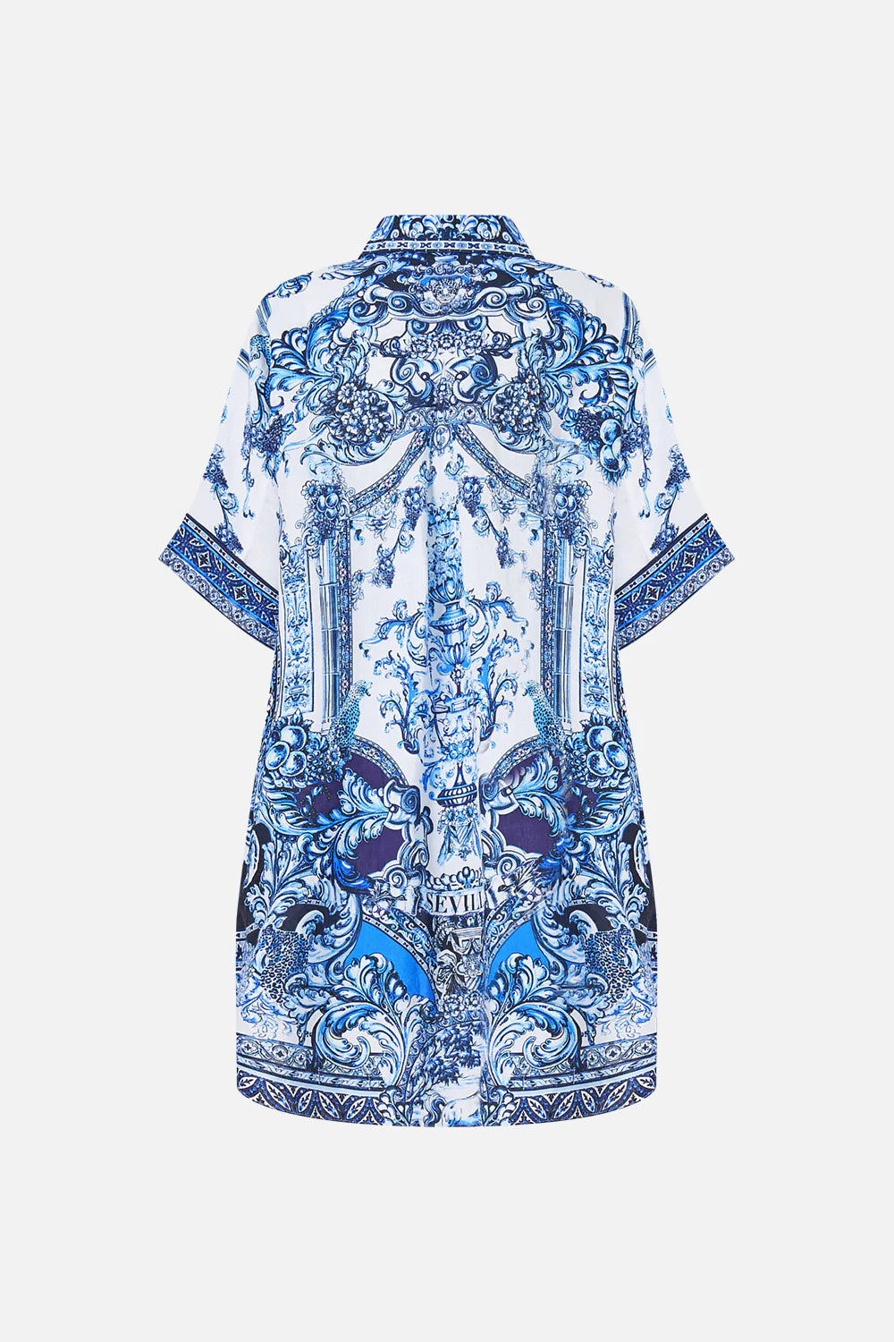 Curated by Ellery & Moss, The Camilla A Tiled Wonderland Oversized Pocket Tunic is a handcrafted silhouette designed by in-house artisans. Created in an exclusive limited edition print, THIS oversized linen tunic features a playful high low cut with a curved hemline. Pocket detail and a structured collar elevate this versatile piece.