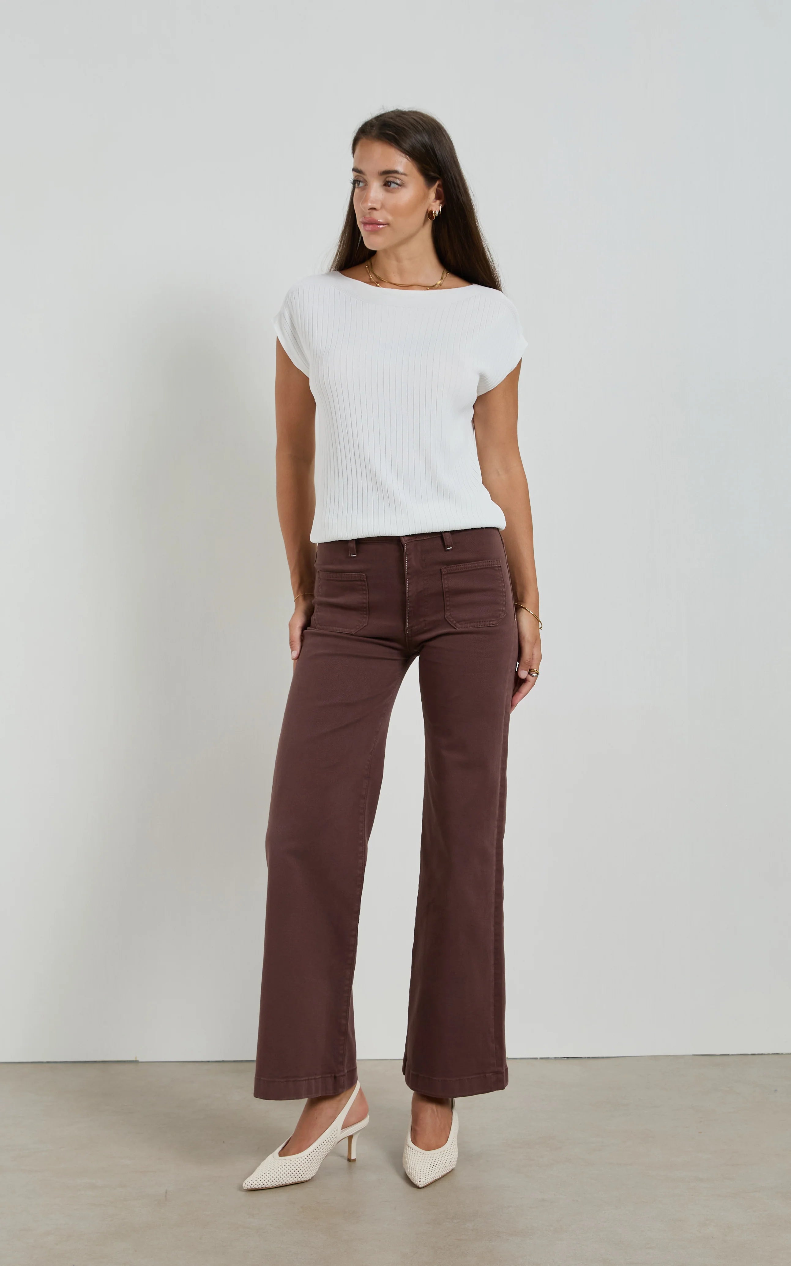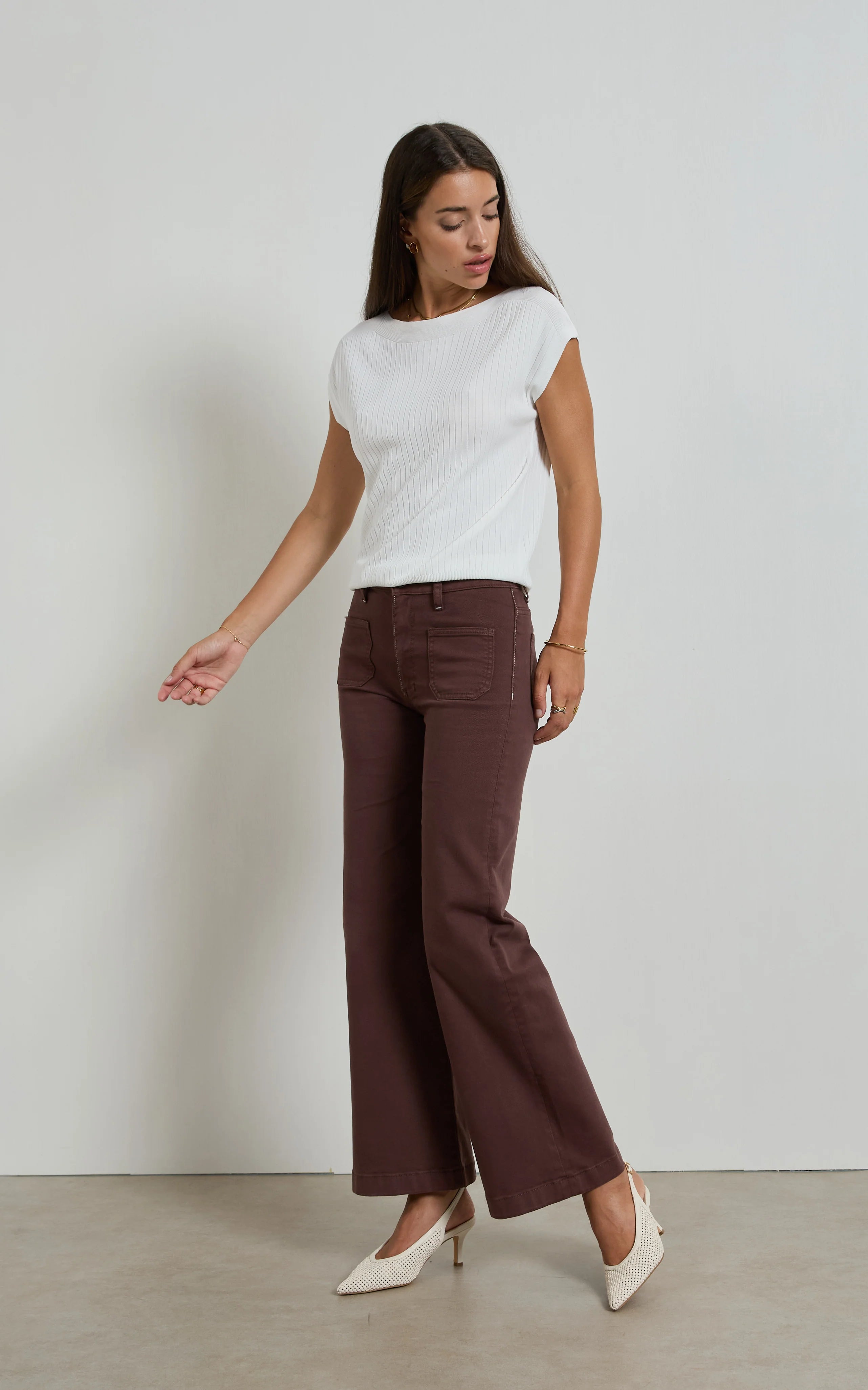 Effortlessly cool in a French Roast colour, the Indy Wide-Leg Jean is tailored with a high-rise waist and relaxed silhouette that skims the body with modern ease. Accented with patch pockets, it’s a clean, directional take on everyday denim.