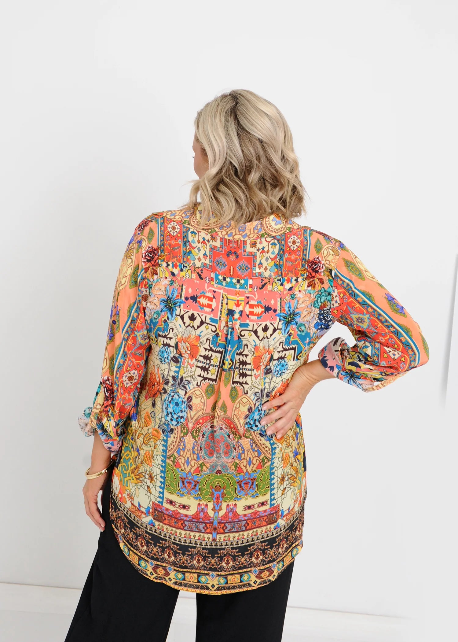 Lightweight and wrinkle-resistant, this shirt is ideal for travel, offering both style and practicality, style with a classic tailored pant for a sophisticated daytime look or a refined silk skirt to take you in the evening.