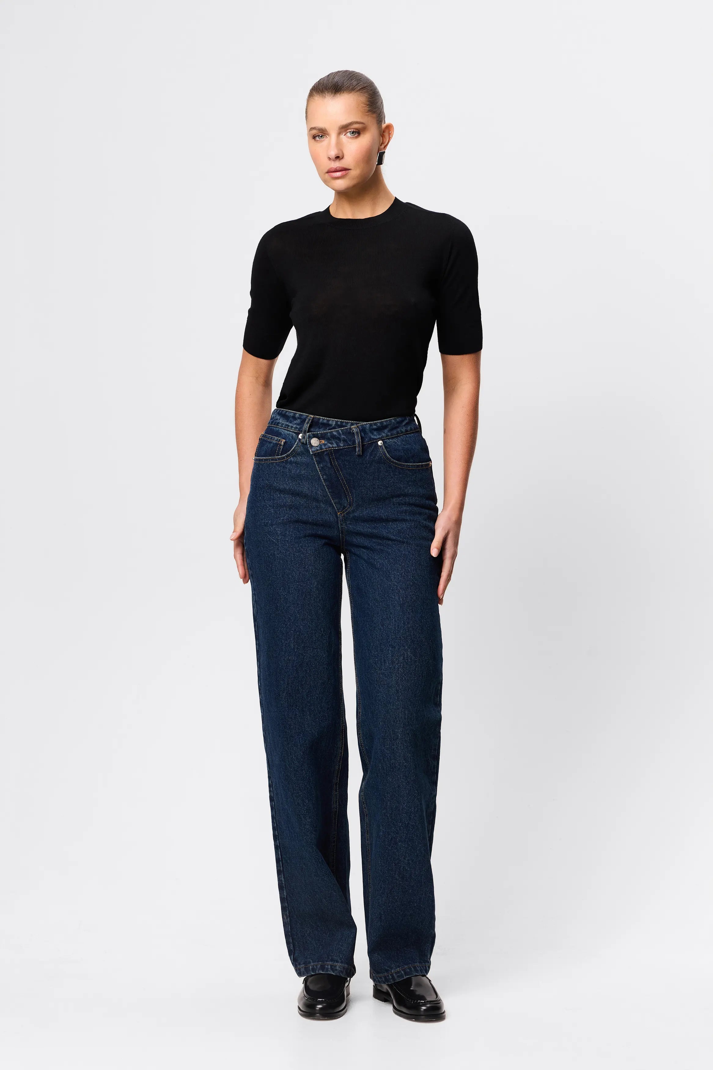 Curated by Ellery & Moss, The Overdrive Jean redefines classic denim with a contemporary twist. Crafted from premium washed indigo denim, this style features a unique wrap-style front closure and a straight-leg silhouette for a clean, elongated look. Complete with a waistband and belt loops, functional pockets, and classic 5-pocket styling, it offers both versatility and structure.