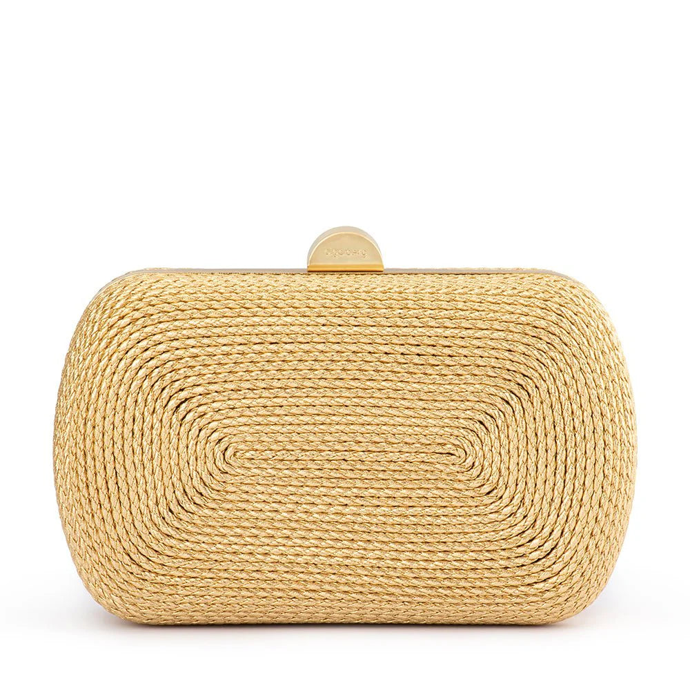 Made from a metallic woven rope and meticulously sewn together using a coiling technique, the MARTINA clutch is guaranteed to get noticed. The rounded rectangle shape fits comfortably in the palm of your hand. Wear it as a clutch by tucking the shoulder chain inside or wear it as a shoulder bag for those hands free moments.